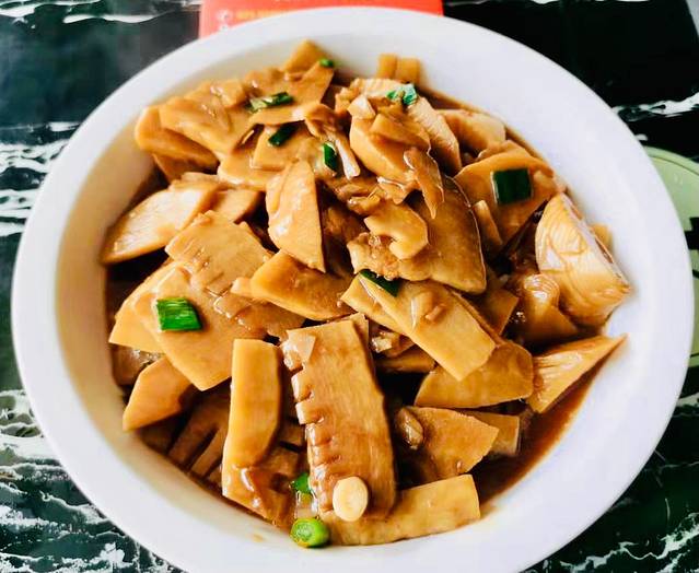 在旁边邻湖人家简单吃点东西,当地时令菜-油焖春笋不错。