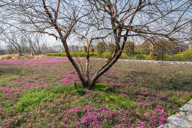 宿迁三台山国家森林公园,百花深处有村,村名衲田。山水相依处是小村边界,荡漾的花海也让衲田村走出了圈。