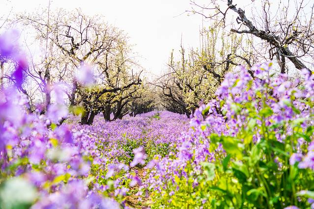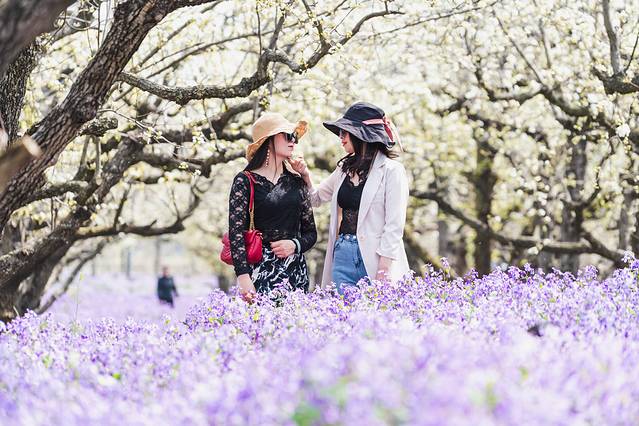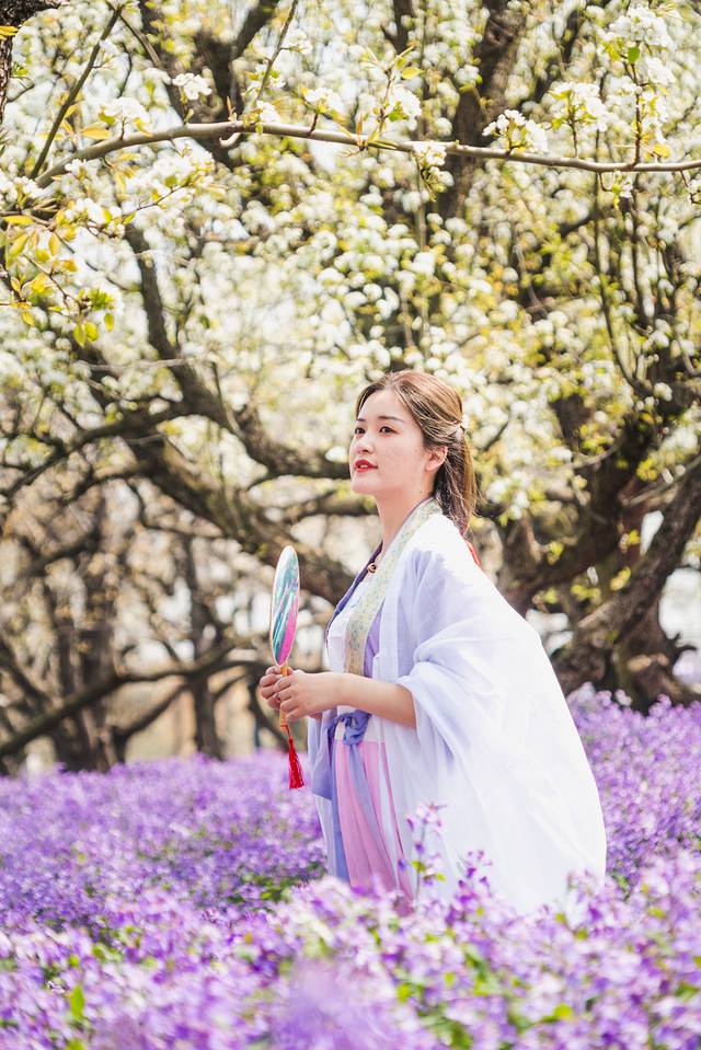 春天来到这里,梨兰会不容错过,300亩梨花、二月兰竞相开放,梨花洁白象征着纯洁,梨林的间隙种植的是二月兰,二月兰蓝中带紫,充满着法式的浪漫。阡陌交错间,白色的梨花与雅致的兰花交相辉映。着一身古装,美美的凹几个造型,仿似穿越了古今,别有一番滋味在心头。无论是黛玉葬花时的忧伤,还是宝玉怜花时的爱惜都可以摆得有模有样。
