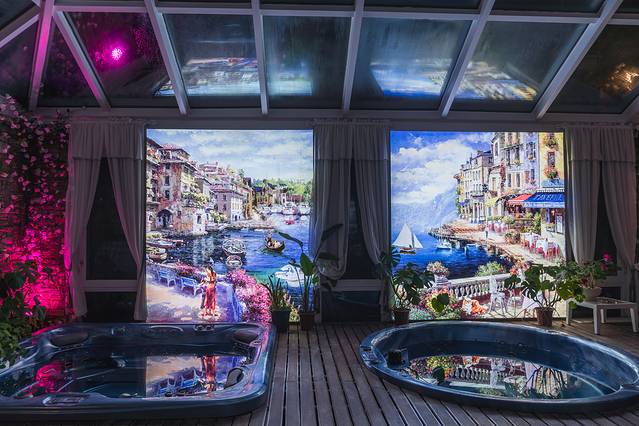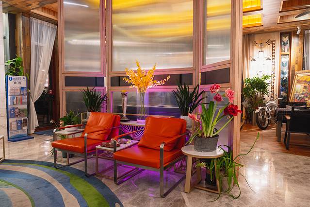 餐厅和吧台和大堂位于一楼,客房大多位于二楼,棋牌室、泳池瑜伽房、汗蒸房、楼顶花园位于三楼,KTV、室内高尔夫位于负一层,真的是麻雀虽小,五藏俱全,这简直就是五星级酒店的品质。层层电梯直达,拖着行李箱入住的,也不用为上下楼提不动行李箱而担心。