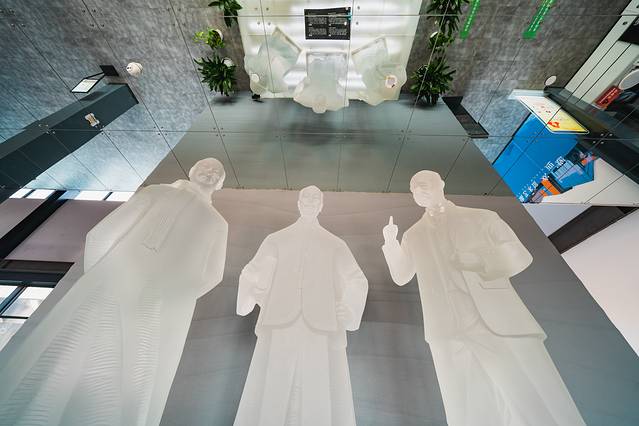 全息投影采用先进的全息影像技术,通过产生立体的空中幻像,让你了解张謇、许鼎霖、黄以霖发现并有效利用宿迁硅砂矿产资源,最后筹办宿迁耀徐玻璃有限公司的励志故事。在这过程中你可以与幻像互动,产生真假难辨的效果。
