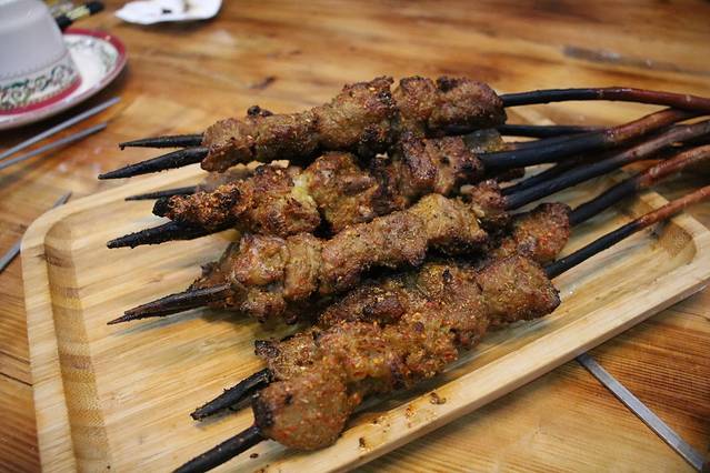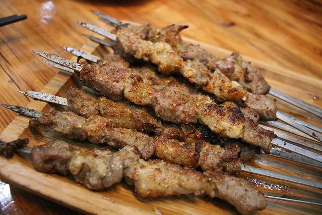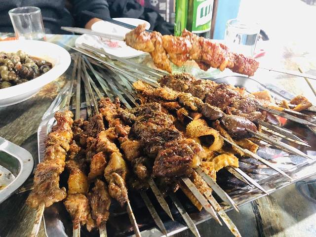 当然,烤羊肉串这些是必点的,上图是柳枝烤羊肉,听说烤出来会有柳木的独特香味,但我更爱下面的铁串烤羊肉,感觉味道会浓郁些。