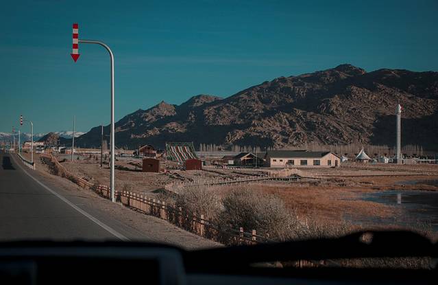 从五彩滩出来,途径阿勒泰地区,路途还是比较长的,其中经过一条比较有意思的公路-也拉曼公路,也是因为冬季的原因,草原变成了小“荒漠”,除了那一条蔓延的公路以及前面壮观的雪山,四周都是一片黄色,但是相机一抬随手都是沙漠大片。