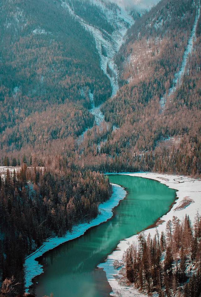 我是在11月初的时候出行的,山上已经开始开始飘雪,河的两边都已经飘雪,有些河流部分已经结冰,相机一拿起来还是挺震撼的,不过气温有点冷,建议还是多备厚一点的衣服,因为接近冬天会有积雪,气温还是会比较低。