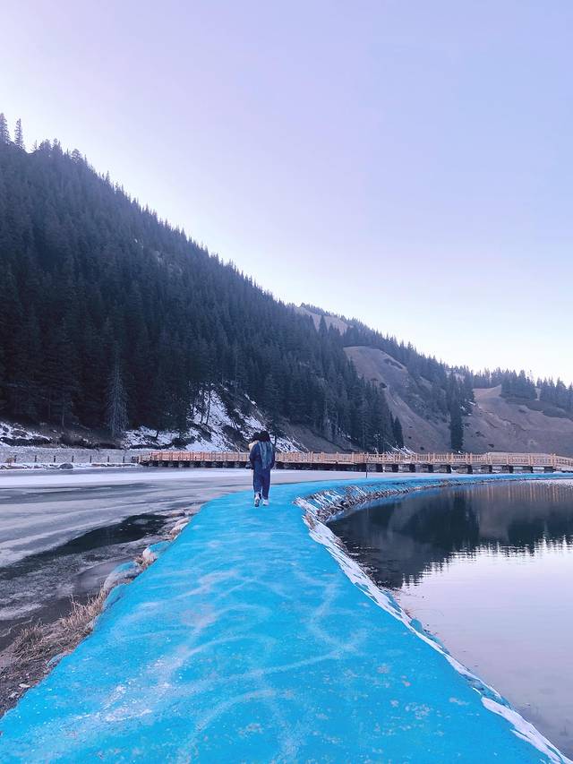 进入喀纳斯湖要闯过一条弯曲的阶梯,因为下雪天,路特别滑,我闺蜜看到喀纳斯湖的美景想拿起相机炫耀一下她的拍摄手法,结果一个踉跄整个人顺着楼梯滑下去,那真叫一个疼,所以冬季去的小伙伴千万要注意安全我闺蜜就是一个血淋漓的教训。