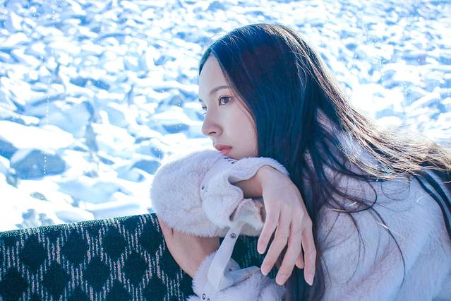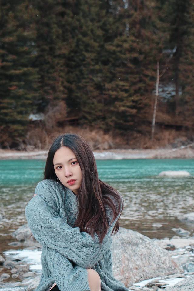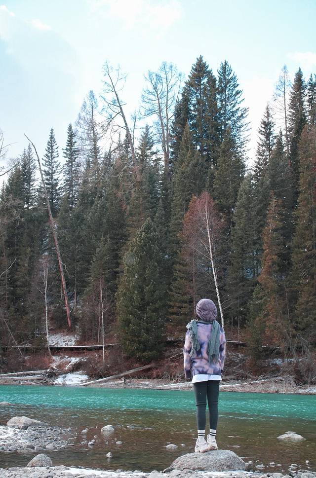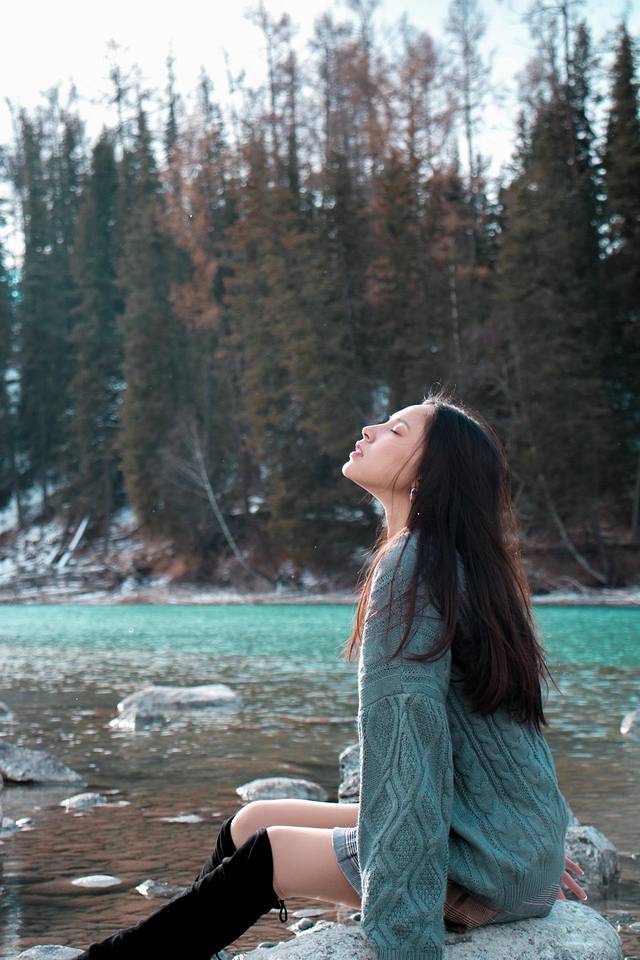顺着路下去,整个碧绿的湖面映入眼帘,湖面两边都是一块块的石头,天气还飘着雪,坐在靠近湖中间的石头上拍照特别有意境,因为我们带的是定焦,然后看到旁边带着远焦和无人机拍摄的小哥哥煞是羡慕,因为这个季节人不多,所以基本不会遇到数人头的现象。