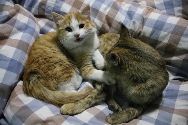 认真喝我奶茶的小奶猫(没有其它可以吃的,只能将就),看它们在外面冻得可怜,就让它们进了屋取取暖。