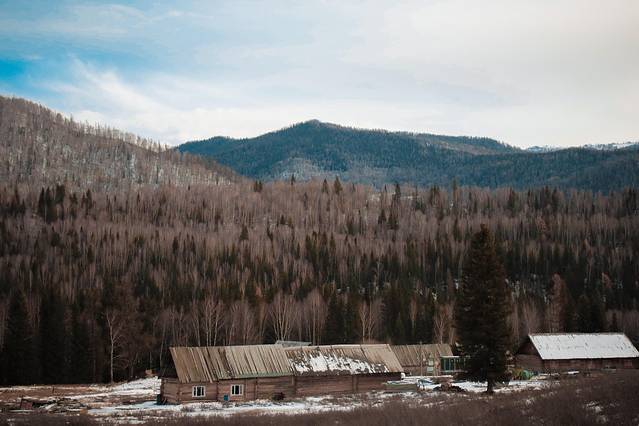 村子在群山的环抱之中,山并不很高,但是上面有着成片成片如画般的白桦林,不知道应该怎样描述这种自然的美,感觉用什么语言形容都黯然失色。