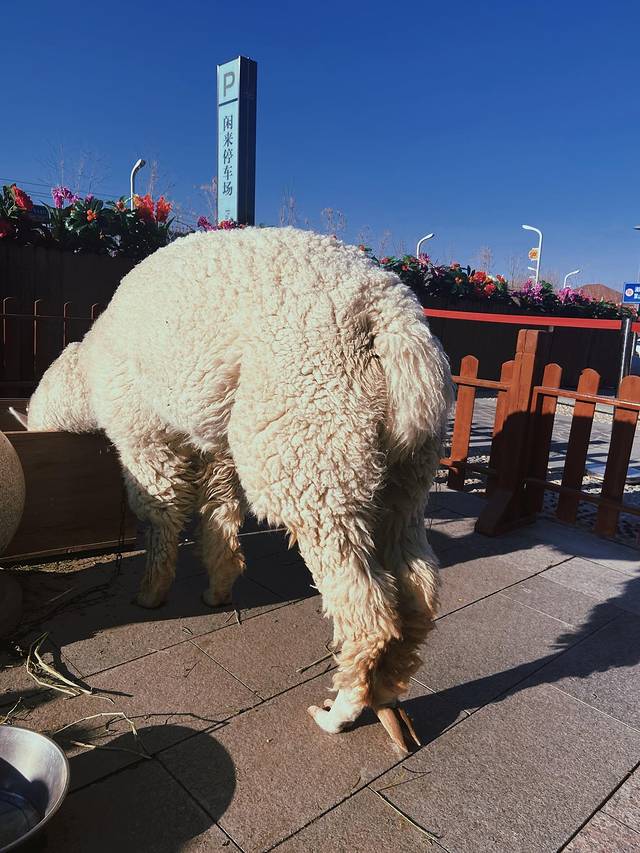 最后一天我们打算休闲一点逛逛,好好享受一下在新疆这边待的最后一天,当然,美食是必不可少的,新疆乌鲁木齐那边的闲来小镇,说的吃的很多,所以特意去看看,一下车这搞笑的羊驼便立马抓住了我们的眼球。