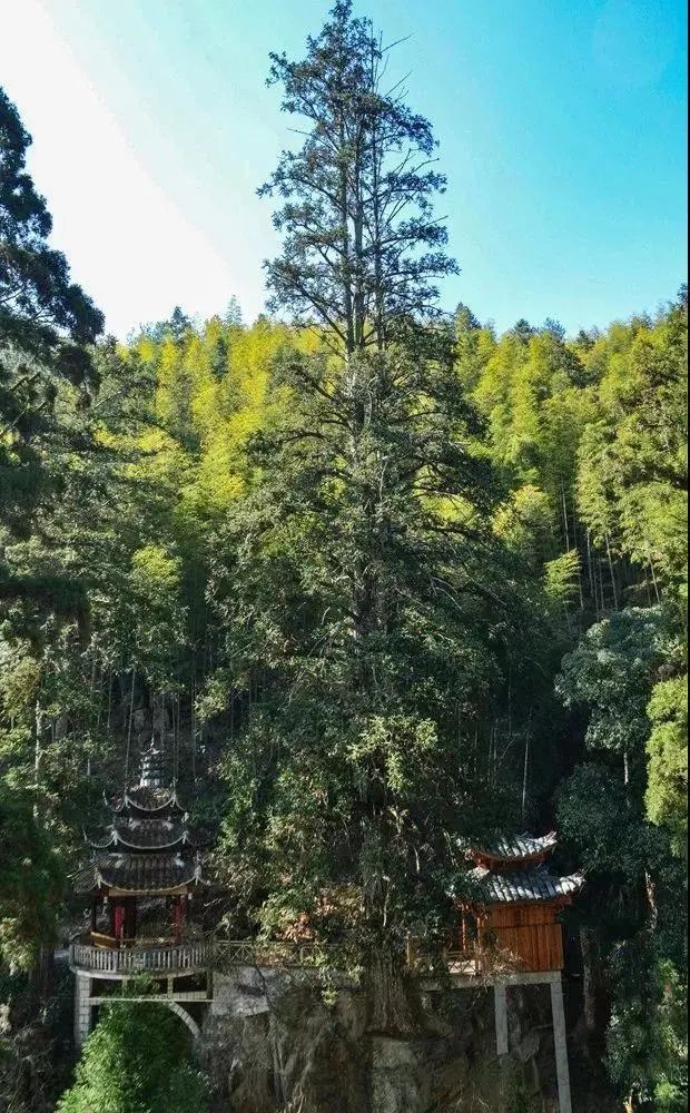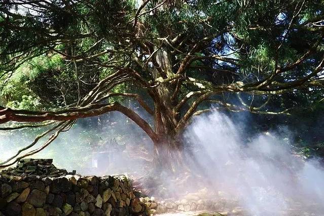 这树树龄已有800多年,树枝繁茂粗壮,平直舒展,一副千手观音般模样。