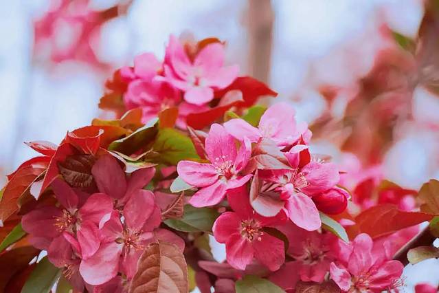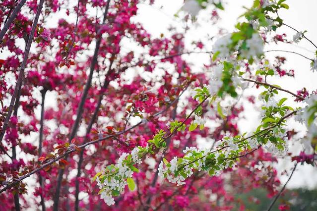 郊野公园中桃花源的山桃花也已悄然绽放,如少女般明净的脸庞,温婉了春光,当然还有海棠花依旧~