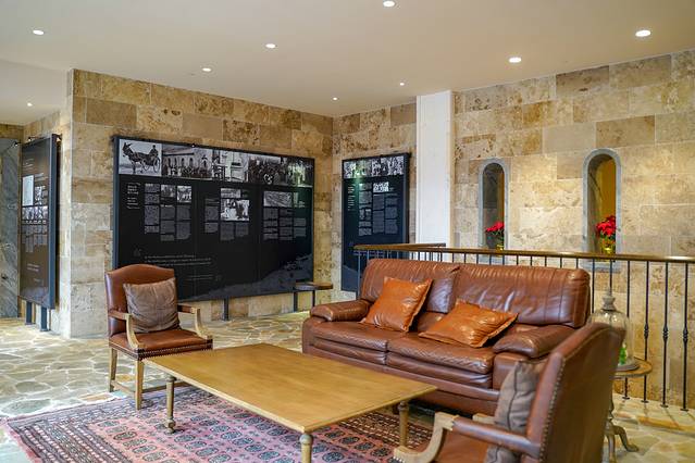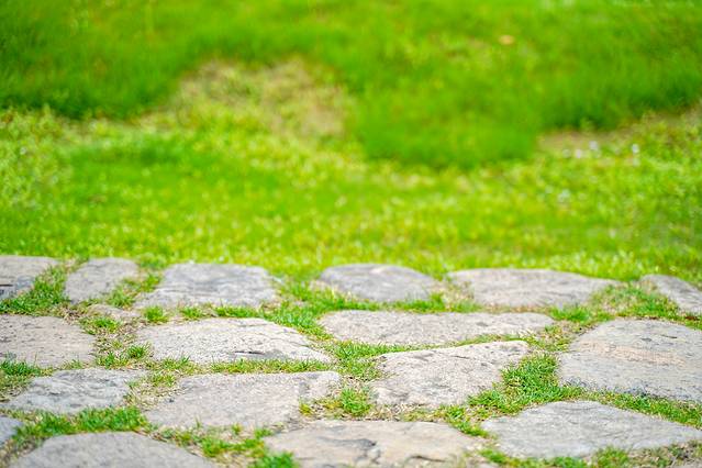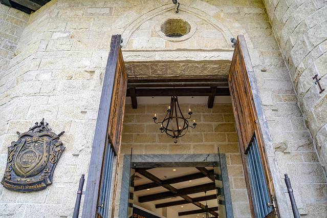 入口处的石砌拱门极具仪式感,是经过人工手工切割堆叠而成,而这也是很多来旅游的情侣最爱打卡的一处地。长长的白色汀步走道,仿佛是一条浮在水上的路,映照着城堡中护城河与桥的元素。伴随着水流声,蝉鸣声,风吹过树林的沙沙声,与花园相连的开阔草地充满生机,喝下午茶、骑马、与自然互动,仿佛进入了世外桃源。
