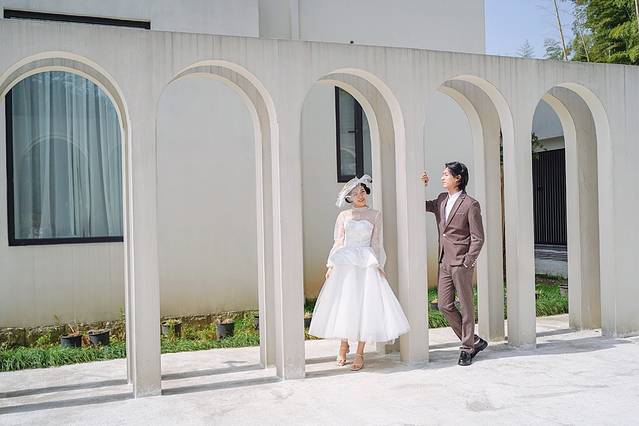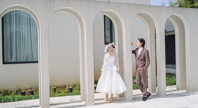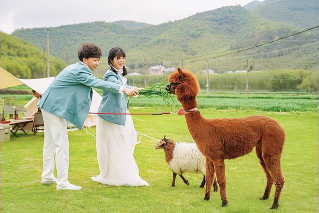 弥宫的建筑整个像一家独立的皇家别墅,有一匹白马站在草坪上,背靠一大片竹林,四周植被环绕,往前望去是有机农地,以及连绵起伏的山林,就像是被花草簇拥着的城堡,在这里拍一组情侣照整个质感都会提升。
