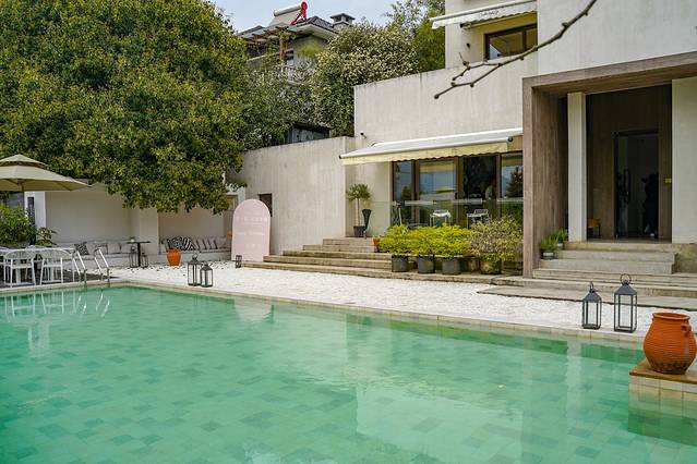 院落里有着大片的青青草地与五颜六色的鲜花,房子一边有着一片种着桃树、梨树、橘子等等的果林,房子的另一边有着一小块种着蔬菜的田地与可爱的小池塘。她的风格更像是摩洛哥建筑的梦幻设计,个人认为是非常适合小情侣过来拍照打卡的。