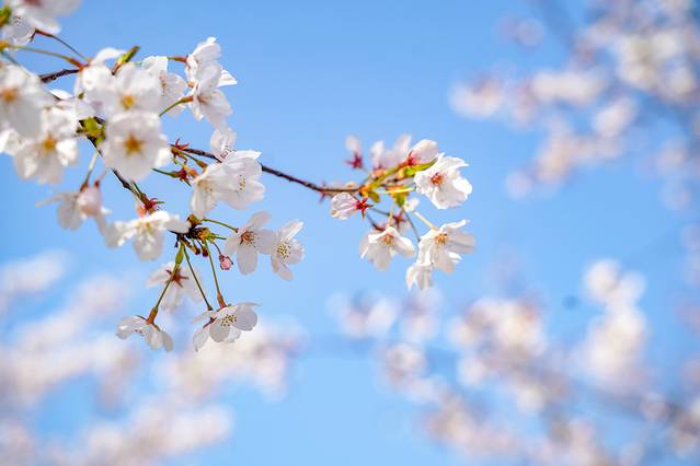 樱花素来有“七日”的说法,一朵樱花从开放到凋谢大约七天的时间,而整棵樱花树的盛放时间也仅半个月左右,边开边落,一旦遇到雨水的冲刷,花期会缩短更多,美好的东西总是容易流逝,赏樱是一定要抓紧的。