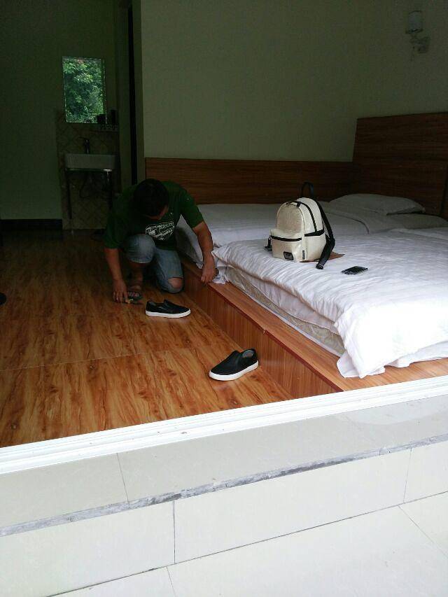 榻榻米的感觉还是很不错的,而且也很干净,房间是上午可人刚退的,反馈说有个地方有点问题,老板自己动手修理