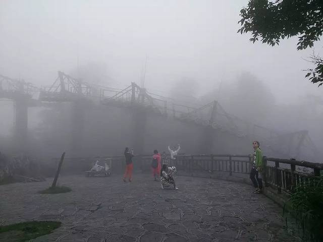 到顶就下雨,雨中的这儿有一种朦胧美,瞬间想到各种剧里仙境