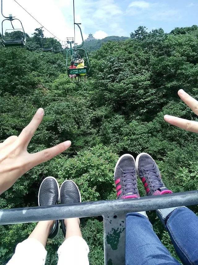 坐了没有玻璃只有护栏的观光缆车,这个比较刺激,第一次坐这样的的缆车是高考结束以后和都教授在青城后山去坐的,我本身也不恐高也不是第一次胆子也大,基友倒是壮壮胆子跟着我一起坐,全程捏紧栏杆不敢松手,敢于挑战自己害怕的东西就是进步的开始