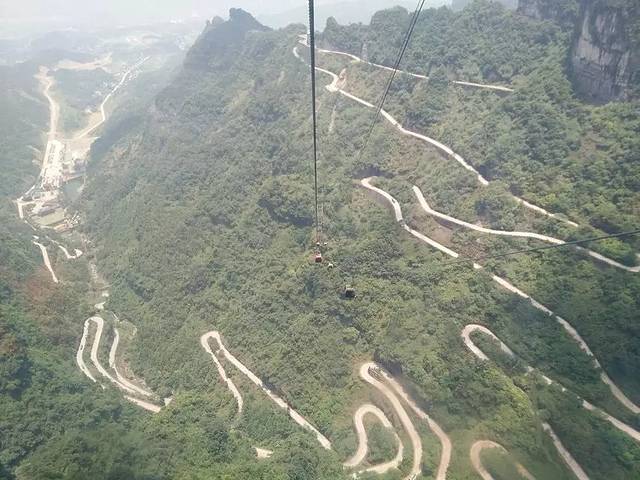 天门山索道,全亚洲最长的,坐了半个小时,跟几个逗逼叔叔坐,全程爆笑,啥缆车充电停电,尿裤子,你别叫我看反正我不敢等等山东话很亲切很搞笑,在缆车上看到的山景