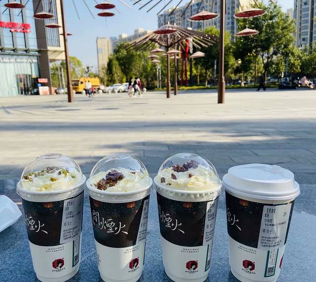 长沙南站也有两家,都在2楼候车厅,我记得是检票进站电梯上2楼,然后左右两边又有楼梯可再上一层,两家店是不一样的,如果手机下单请仔细甄别,我们是跑步前进到店里去买的,时间真的很赶,最后李二狗只带走了一些茶叶和纸巾而没能带走两杯茶颜喝。我们充值200块喝了3天也没喝完,每一杯都是不同的口味两个人换着喝,每天人均4杯,单品还是没有尝试完,剩的钱就换了周边。来看看这几天我们喝的不重样的茶颜,从左到右依次“少年时、悠哉悠哉、三季虫、人间烟火”