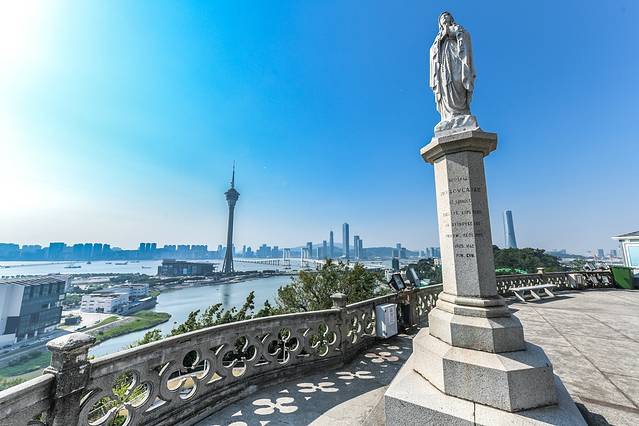 一路上欣赏到美丽的海滨城市风光,海的这边是澳门而海的那边是珠海,珠海与澳门靠的是那么的近。在通往西望洋山的半路上可以一览无余的欣赏到澳门与珠海之间城市风光。此时的你肯定会跟山野君一样赞叹道:澳门,果然是一座海岛城市!