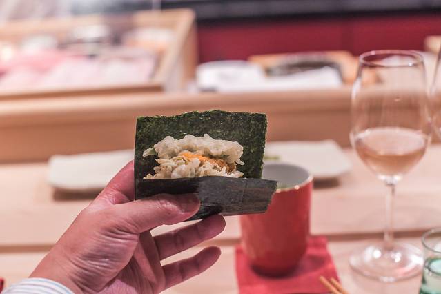 大家猜猜这是什么呢?这是北海道大蟹肉加海苔一起的美食,味道超级赞,值得推荐。