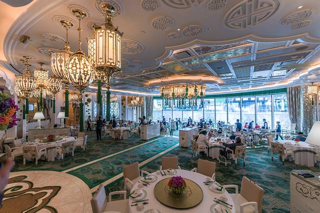 虽然这家餐厅的环境是典型的欧洲皇宫宫殿建筑与装修风格,但是菜品大部分都是以中式为主,尤其是广东地区的膳食为最基本。此家餐厅还有一个非常大气而浪漫的名字,它叫永利宫。