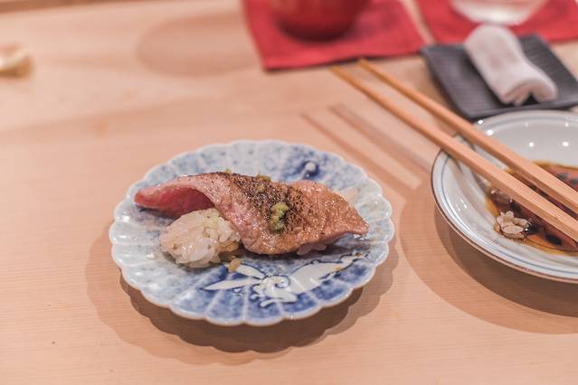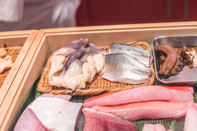 在这寿司吧台可以感受一下与日本厨师互动的情趣,可以让食客们亲眼目睹整个食物的制作过程,非常有意思。