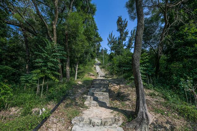 在港澳地区,没有人工开发的原生态公园都叫做郊野公园。走进澳门大潭山郊野公园,第一印象就是非常的原生态,除了很多年前铺砌的登山小马路之外,路的两旁都是绿树成荫。看着山脚下是澳门最现代化的城市面貌,而这里则是原生态,所以山野君就决定登山前往最高的位置。