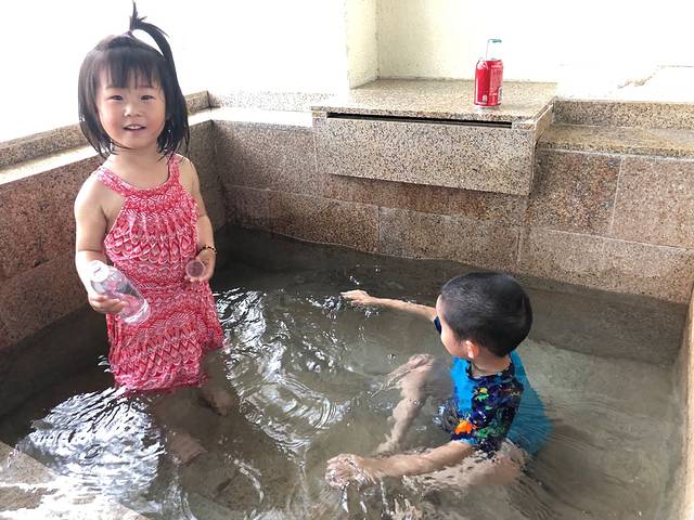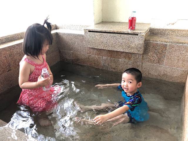 可是过了一会,儿子却说要回房间找兜兜妹妹了,说他们还没有在房间的阳台泡过温泉呢。拿他没办法,只能马上回酒店房间清洗好泡池,让他们尽情的玩水。