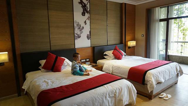 等闺蜜Kami办好入住手续后,我们只能强拉着这两小家伙的小手,往酒店客房走去。我们入住的是听泉阁3栋,跟闺蜜kami、兜兜妹妹隔了一间房间。一打开房间的大门,儿子Jerry哇了一声,说好大的房间,好好看啊。一边说,一边自顾自的玩起来,还不忘叫我们帮他拍照,真的很好笑。
