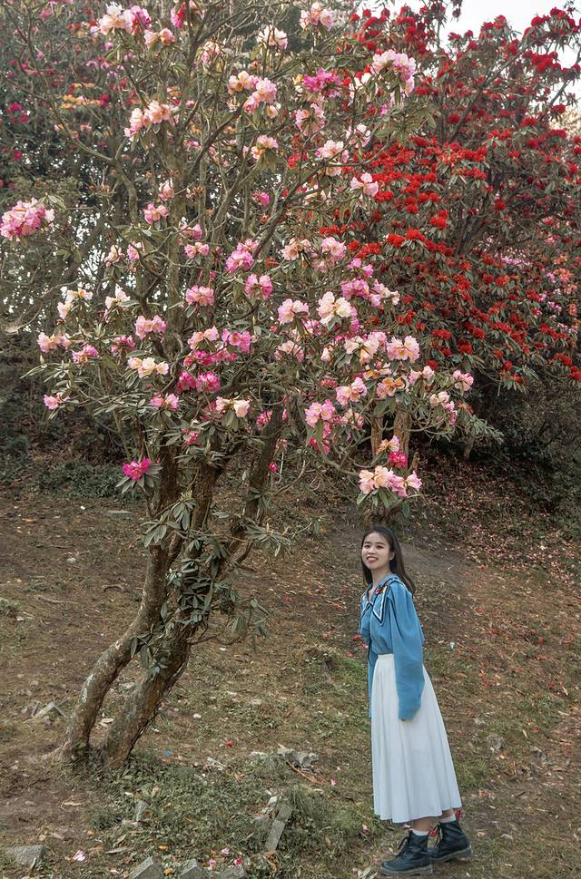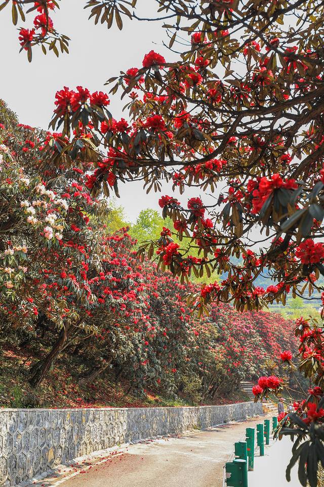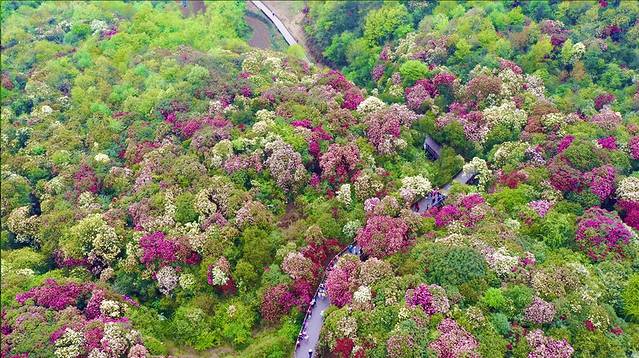 索玛花儿一朵朵,一路听着悠扬的歌声,漫步在杜鹃花海下,索玛花就是杜鹃花,也是这里的杜鹃花神,金坡的百花坪是杜鹃花品种最多的景点,每一棵杜鹃花都开得非常艳丽,站在花下随手一拍都是大片,美到极致。