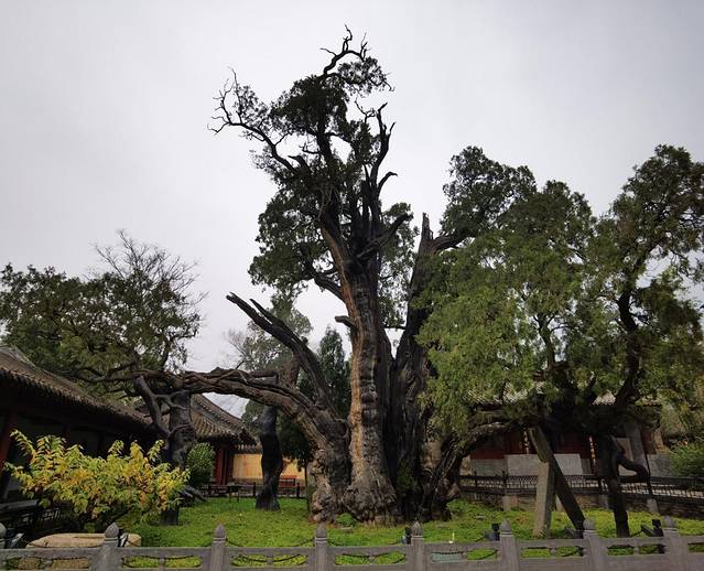 树龄在4500年以上的古栢树,为西汉时期汉武帝刘彻游