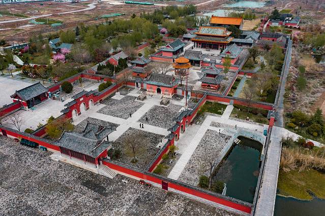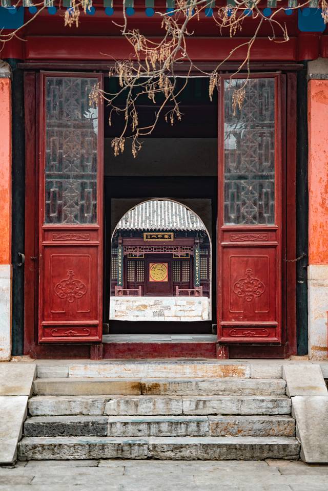 最奇特的是这里只有东西两门,没有南门。只因乾隆来此都是东进西出,所以就没有南门了。院内栽植有柏、柿、桐、椿、槐、杨六树,取“百市同春”、“百世怀杨”之意。
