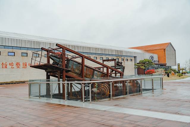 出三台山国家森林公园西门,南行800米,就是宿迁晶·世界-玻璃艺术馆。晶·世界-玻璃艺术馆,总建筑面积约17000平方米,是在原有老厂房的基础上,用“以旧为基、新旧结合”的理念,经过重新设计而成的。在建筑上尽量保留和利用旧建筑主体和机械原物,实现历史印记保留、旧建筑再利用最大化。