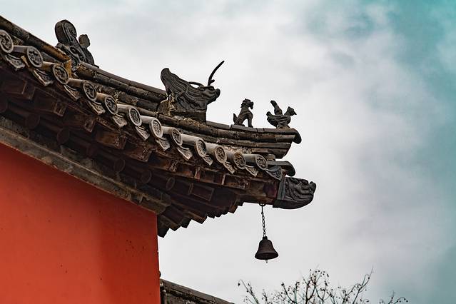 过禅门进入第一道院落,中心位置是乾隆皇帝下旨建造的御碑亭,御碑亭两旁,建有钟、鼓二楼。御碑亭北面是怡殿,位于中轴第一道院和第二道院的相交处。