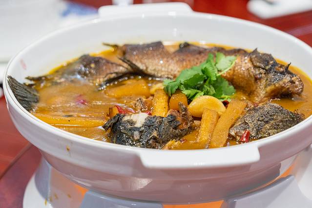 杂鱼锅贴别具特色,红烧泥鳅、黑鱼烧萝卜,芡实炒虾仁、荷塘小炒、南瓜扣莲子、扣百叶、桂花糯米藕、泡椒藕芹……样样美食是色香味俱全。