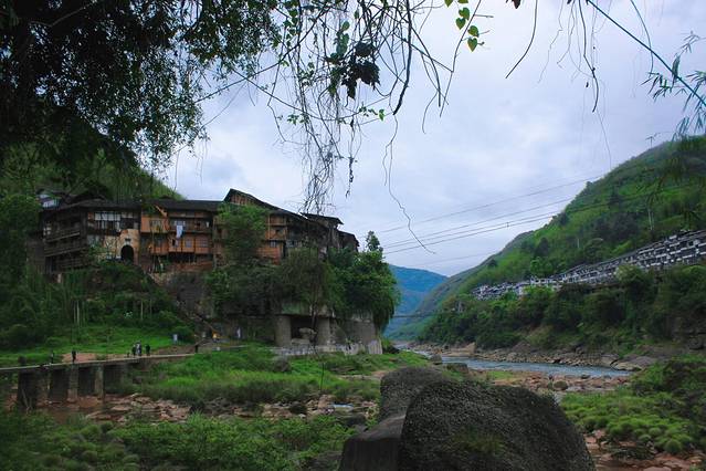 这个桥就是古镇的起点,从这里正式进入丙安古镇。整个古镇是一个吊脚楼的设计,全部都是用树干支撑起来的房子,不得不不佩服先人的智慧,光是看我都看的心惊胆战,更别说去住了!