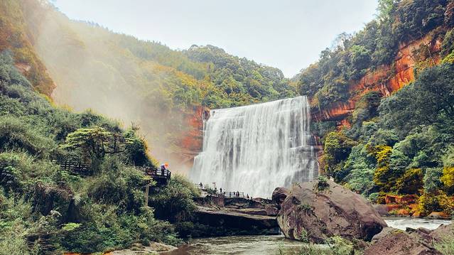 我们第一站是赤水丹霞大瀑布,据说是中国丹霞地貌上最大的瀑布,也是长江流域上最大的瀑布,完全可以和黄果树瀑布并称。