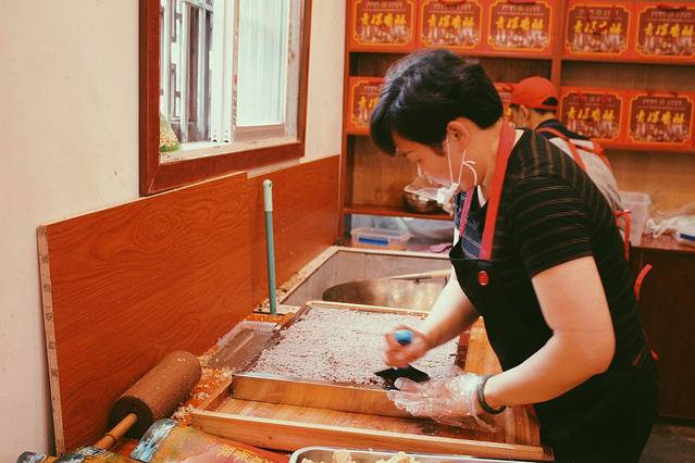 古镇有很多卖当地特色小吃的地方,推荐一家米花糖店,几乎人手几袋,20元一袋,买四送一,很新鲜的,所有米花糖都是现做的,我也是第一次看见米花糖的制作过程。