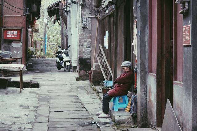 在古镇里生活的都是一些老年人,在这里享受他们的老年时光。