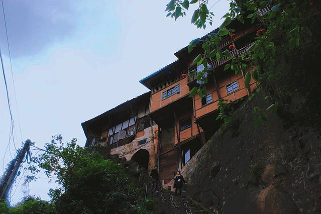 上古镇会爬一个几乎垂直的90度陡坡,大家一定要拉好旁边的铁索。