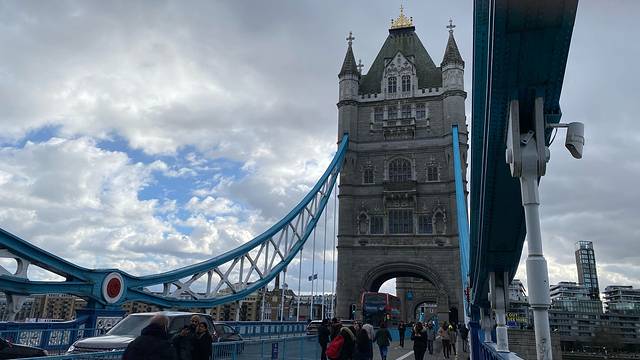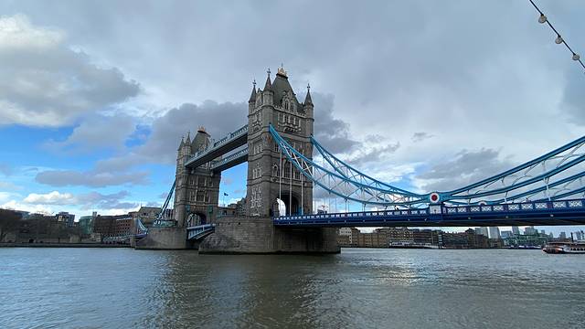 伦敦塔桥之上,伦敦塔桥和伦敦桥不是一座桥,这个桥是因旁边的伦敦塔得名,伦敦塔就是旁边那座城堡
