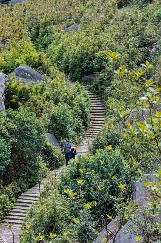 漫步其中,听着耳边鸟儿的鸣叫,看着绿色枝叶上的露珠,赏着色彩艳丽的漫山杜鹃花,呼吸着大罗山绿色氧吧的新鲜空气,高负氧离子的空气活活把沉积在底层肺泡的尘埃砸出体外,让我这个刚刚遭受北方沙尘暴的双肺得到彻底的修复。能得到大罗山如此慷慨的犒赏,这次的温州生态园之旅肯定是不虚此行。