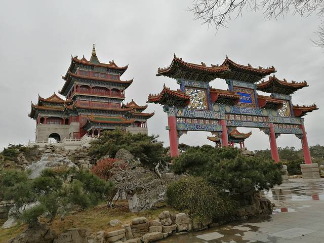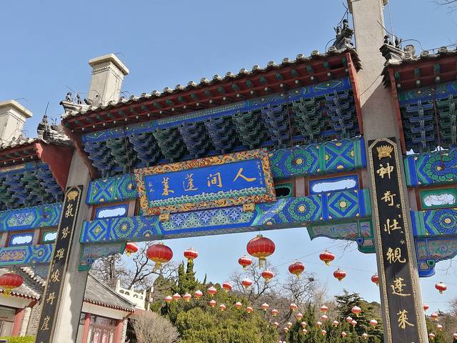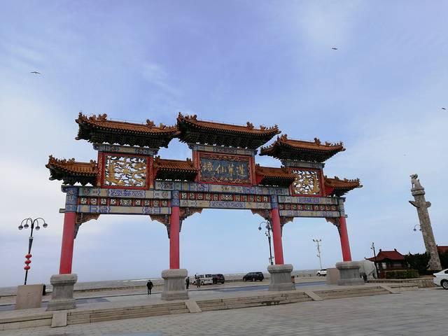这是一座仿清风格的牌坊式建筑,“人间蓬莱”是苏轼的手迹。“神奇壮观蓬莱阁,气势雄峻丹崖山”意思是说这个牌坊就是仙境大门,游人来此就可看到琼楼玉宇,如入仙境。进入这个大门就是神仙之旅!