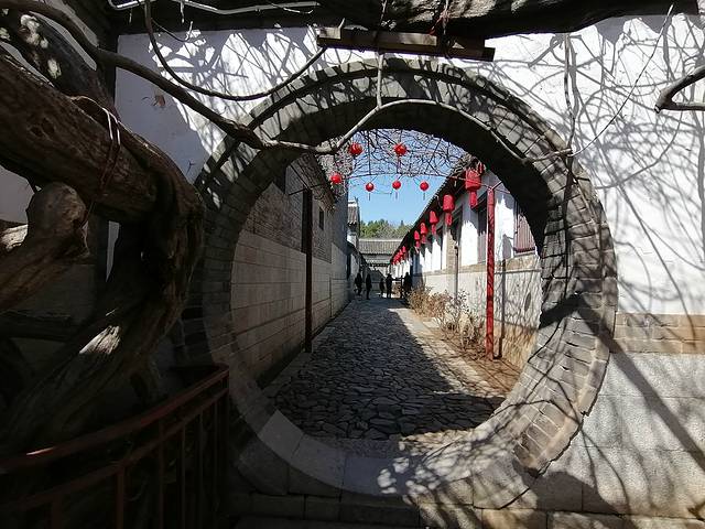 这个圆形拱门在电视剧中多次出现,家庭议事完,几位爷从这个门走出来。