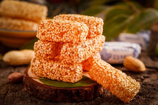 芝麻糖是山东菏泽传统名点,已有200余年的历史。其形呈条形或平板形,色泽乳白,提亮晶明。集五谷之精华,经多重发酵手工制作,味道香甜酥脆,绿色营养。尝一口便可收获舌尖的醇香与甜蜜。