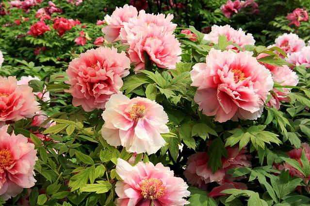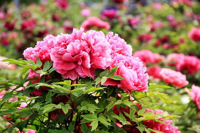 曹州牡丹园里的牡丹花积蓄了一冬的力量,吐露芬芳。园内牡丹品种涵盖9大色系,10大花型,1237个品种,总量达到80万株。它是世界上牡丹种植面积最大、品种最多的植物园林。