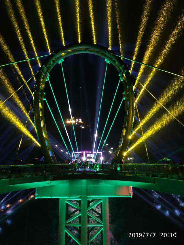 夜间悬廊灯光的交相辉映,让整个景区变成如梦如幻的世界。