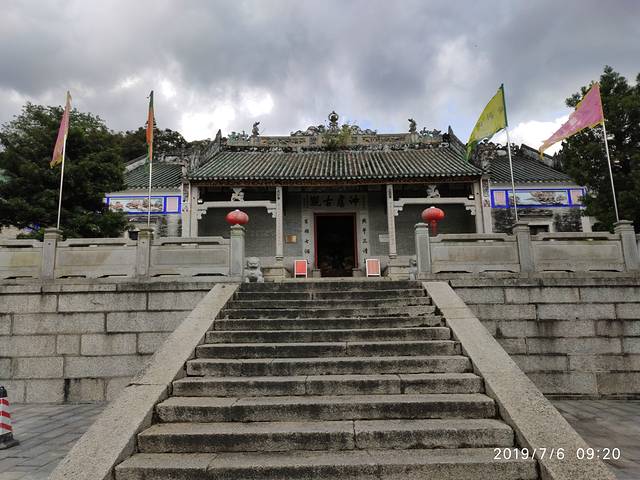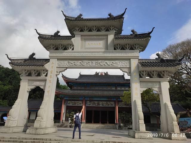 牌坊上的对联:百粤启山闻紫府,三清灵气聚朱明。